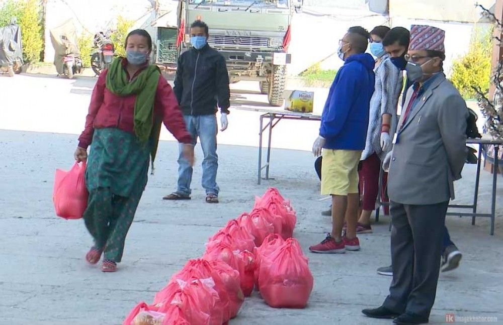 काठमाडौं, चैत २१ । काठमाडौं महानगरपालिका वडा नम्बर–५ मा ‘लकडाउन’का कारण समस्यामा परेका ज्याला, मजदुरी गर्ने तथा निम्न आय भएकाहरुलाई शुक्रबार राहत सामग्री वितरण गरिएको छ ।