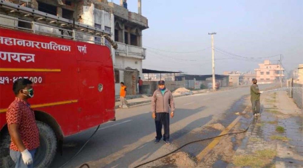 वीरगन्ज, चैत २६ । कोरोनाभाइरस नियन्त्रण गर्न वीरगन्ज महानगरपालिकाले औषधि छर्ने र पानीद्वारा स्यानिटाइज गर्ने कार्यलाई तीव्रता दिएको छ ।