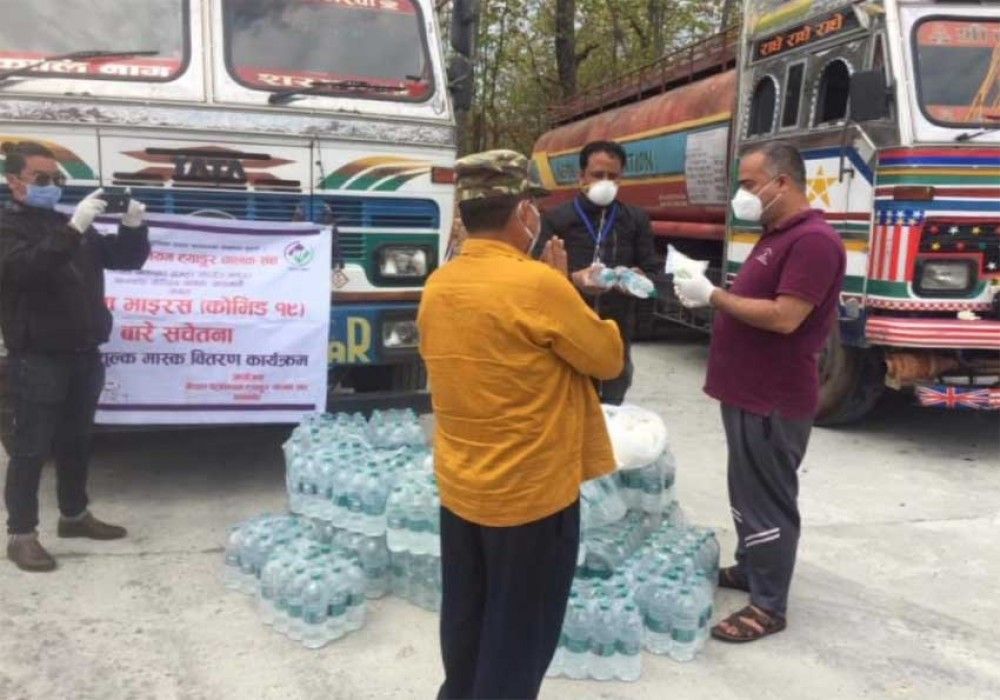 भारतबाट नेपाल भित्रने डिजेल तथा पेट्रोल ट्यांकर चालकहरु कोरोना संक्रमणको उच्च जोखिममा रहेको भन्दै ट्यांकर चालक संघको अगुवाइमा यी सामग्री वितरण गरिएको हो ।