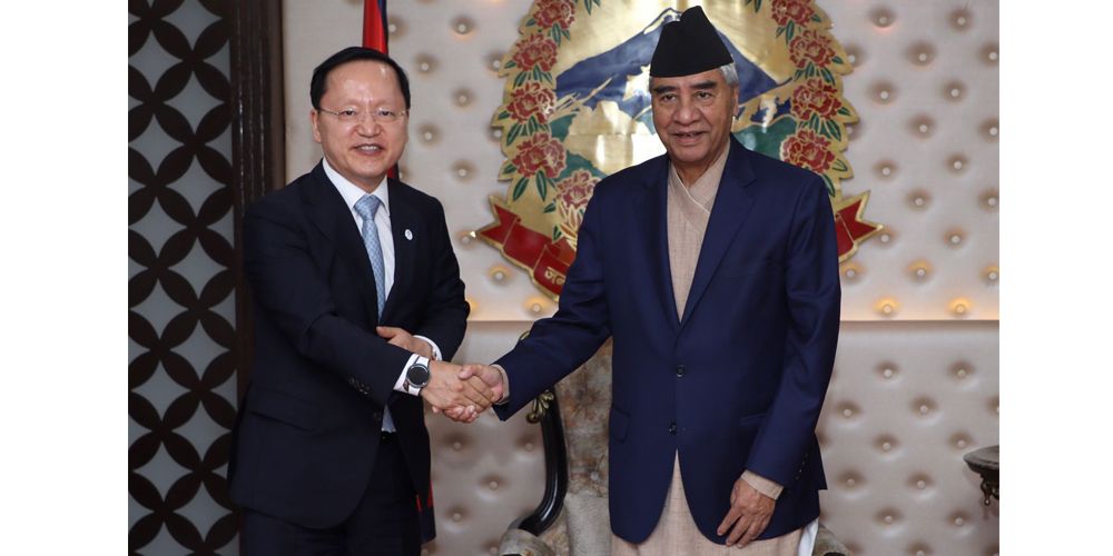 काठमाडौं । नेपालको औपचारिक भ्रमणमा आउनुभएका सामसङ इलेक्ट्रोनिक्सका ग्लोबल प्रेसिडेन्ट तथा सिएफओ एच के पार्कले बुधबार प्रधानमन्त्री शेरबहादुर देउवासँग शिष्टाचार भेटवार्ता गर्नुभएको छ ।