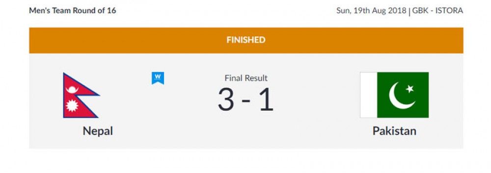 आइतबार भएको समूह चरणको खेलमा नेपाल पाकिस्तानलाई ३–१ को सेटमा पराजित गर्दै क्वार्टरफाइनल प्रवेश गरेको हो ।
