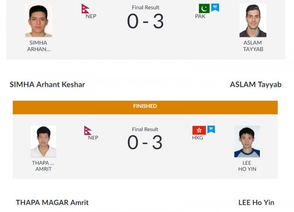 स्क्वासतर्फ अर्हान्तकेशर सिंह र अमृत थापा मगर पहिलो खेलमा पराजित