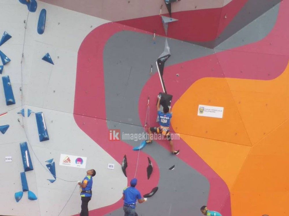 एसियाडमा क्लाईम्बिङ स्पोर्ट्सतर्फ नेपालले लिड, बोल्डरीङ र स्पीड गरी तीन विधामा प्रतिस्पर्धा गरेको थियो ।