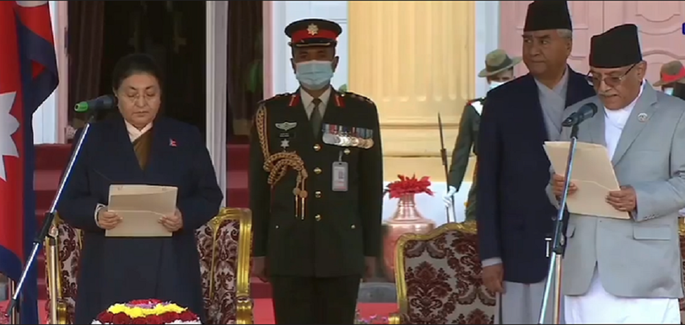 काठमाडौं । नवनियुक्त प्रधानमन्त्री पुष्पकमल दाहाल प्रचण्डले राष्ट्रपति विद्यादेवी भण्डारीबाट पद तथा गोपनियताको सपथ लिनुभएको छ ।