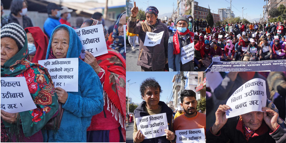 स्थायी विकल्प विना नहटाउन माग गर्दै सुकुम्बासीहरुले धर्ना दिएका हुन् ।