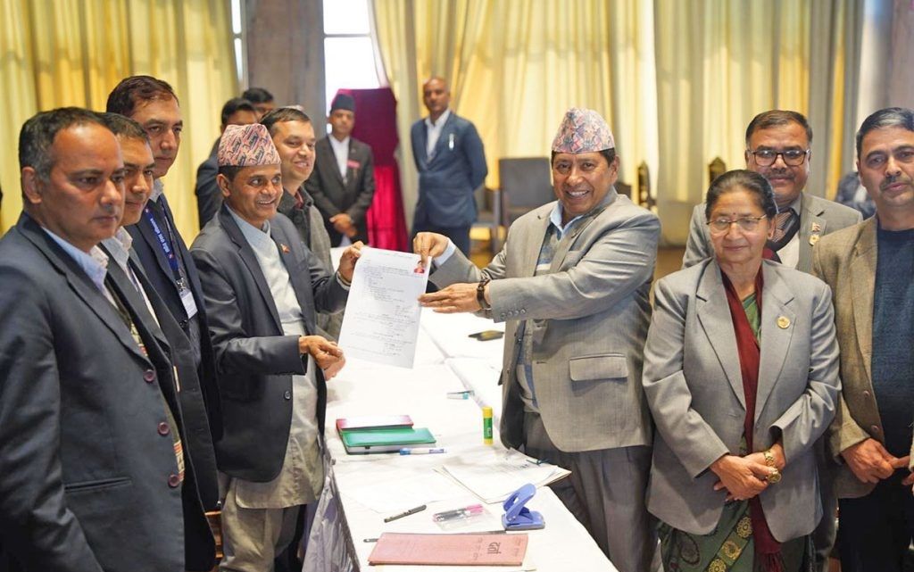 सत्तारुढ गठबन्धनका साझा उम्मेदवार अर्यालको प्रस्तावकमा नारायणकाजी श्रेष्ठ र देवेन्द्र दाहाल तथा खिमलाल देवकोटा समर्थक रहनु भएकाे छ ।