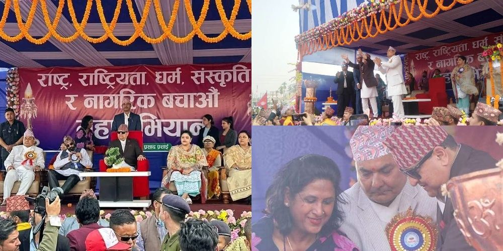 झापा । नेकपा एमालेका केन्द्रीय सदस्य दुर्गा प्रसाद प्रसाईंले पूर्वराजपरिवारका सदस्यहरुकाे उपस्थितिमा ‘राष्ट्र, राष्ट्रियता, धर्म, संस्कृति र नागरिक बचाउने महाअभियान’ को शुभारम्भ गर्नुभएकाे छ ।
