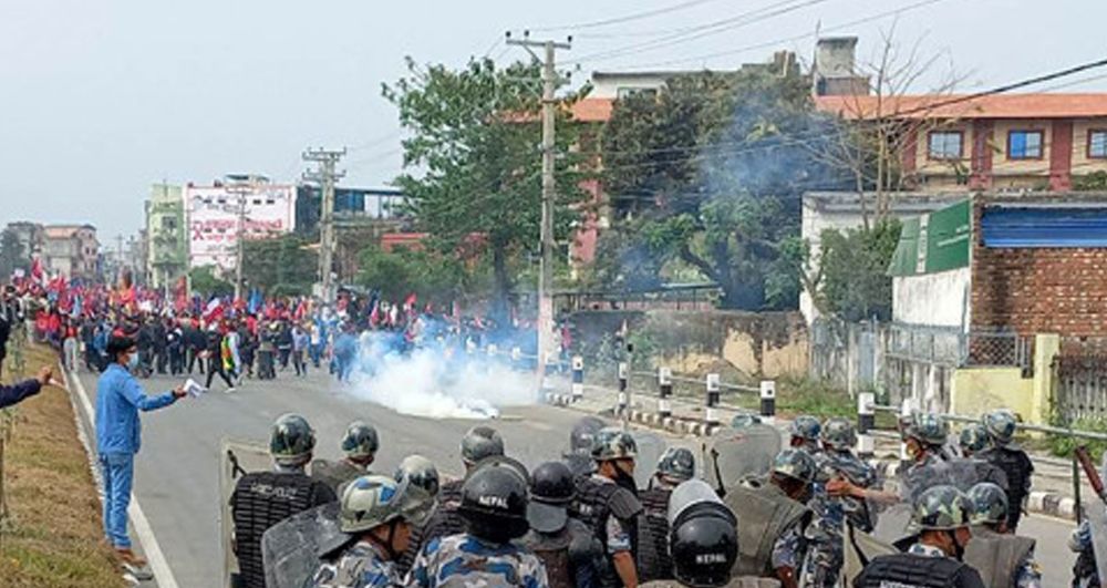 प्रदर्शनकारीहरूले निषेधित क्षेत्र तोडेर सुरक्षाकर्मीमाथि ढुंगामुढा गर्न थालेपछि सुरक्षाकर्मीले अश्रुग्यासका साथै हवाई फायर गरेको हाे ।