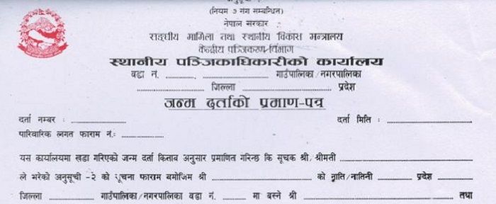 राष्ट्रिय परिचयपत्र तथा पञ्जीकरण विभागका महानिर्देशक तीर्थराज भट्टराईले परिपत्र गर्दै एकल महिलाबाट जन्मेको बच्चाको स्थायी ठेगाना राख्दा बुबाको नाम ठेगाना पत्ता नलागेको यकिन गरी आमाको थर र स्थायी ठेगाना राखेर घटना दर्ता गराउन वडा कार्यालयहरुलाई निर्देशन दिनुभएको हो । त्यस्तै, बदरयोग्य विवाहबाट जन्मेको बच्चाको आवश्यक प्रक्रिया पूरा गरी दर्ता गराउने परिपत्रमा भनिएको छ ।