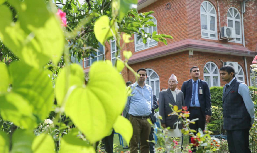 नीजि निवास पुगेपछि राष्ट्रपति रामचन्द्र पौडेलले निवास वरिपरि बगैंचाको अवलोकन गर्नुभएको थियो ।