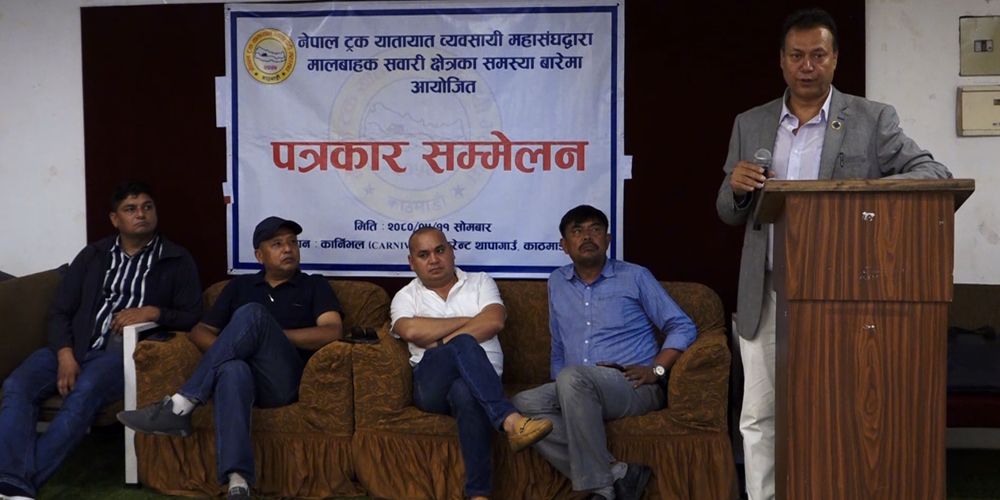 सोमबार काठमाडौंमा पत्रकार सम्मेलन गर्दै नेपालमा रहेका भारतीय मालवाहक गाडीका कारण नेपालमा रहेका मालवाहक गाडीहरुले काम नपाउने स्थिति बनेको भन्दै भारतीय मालवाहक गाडीहरुमा रोक लगाउन माग गरेका हुन् । उनीहरुले निर्वाध रुपमा आउने भारतीय गाडीमाथि स्थायी ढंगबाट रोक लगाइनुपर्ने बताए ।