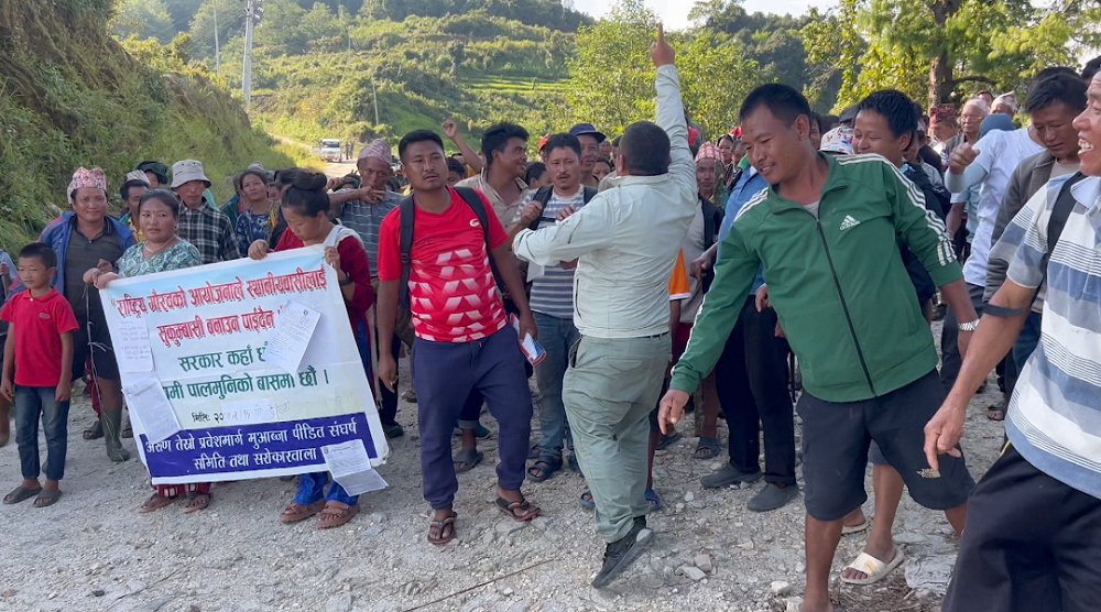 अरुण तेस्रो प्रवेश मार्ग अन्तर्गत खाँदबारी नगरपालिका–४ को छयाङकुटीका स्थानीय जग्गाधनीले मुआब्जाको माग गर्दै अनिश्चितकालीन सडक बन्द गरेर आन्दोलनमा उत्रिएका हुन् । राष्ट्रिय गौरवको आयोजनाले स्थानीयलाई सुकुम्बासी बनाउन पाइँदैन, सरकार कहाँ छौ—हामी पालमुनिको बासमा छौँ, लगायतका नारालगाउँदै उनीहरु आन्दोलनमा उत्रिएका हुन् ।