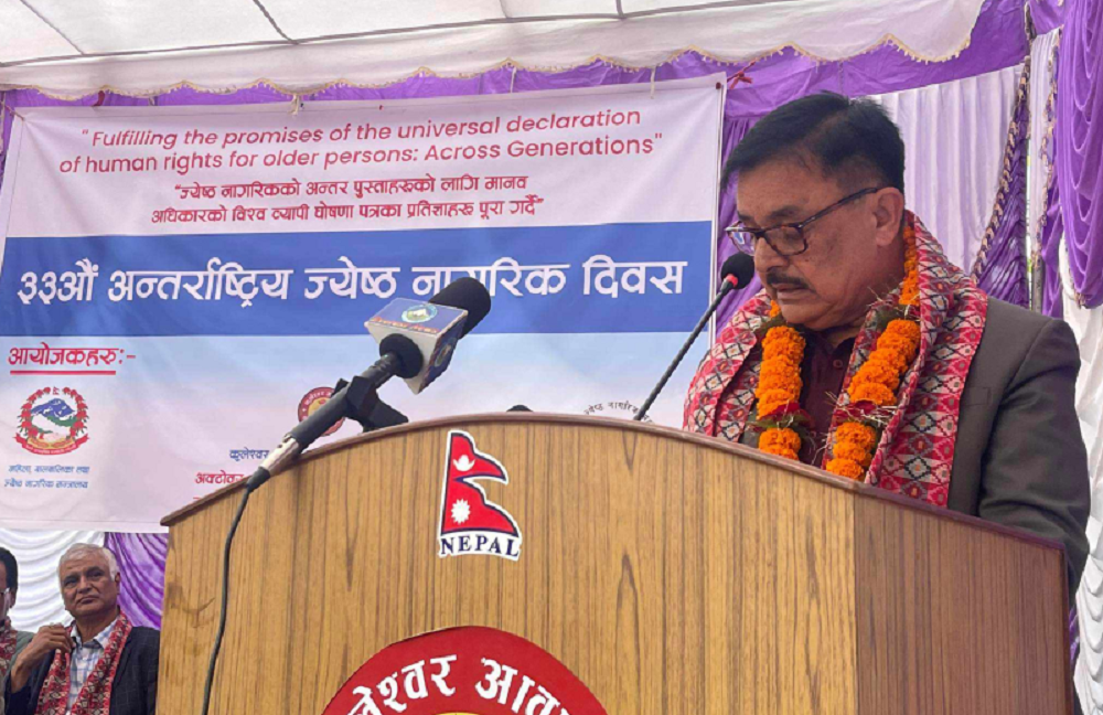 ३३ औं अन्तराष्ट्रिय जेष्ठ नागरिक दिवसका अवसरमा आइतबार आयोजित कार्यक्रमलाई सम्बोधन गर्दै मन्त्री आचार्यले ज्येष्ठ नागरिकमा भएको यो ज्ञान उपयोग गर्न ज्ञान सीप र अनुभवको पुस्तान्तरण गर्न अति आवश्यक रहेको बताउनुभयो । उहाँले ज्येष्ठ नागरिकको अथाह परिश्रम असीम लगानी र लगनशिलताले नै हामीलाई मानव सभ्यताको यो अवस्थामा ल्याइ पु¥याएको स्पष्ट पार्नुभयो ।
