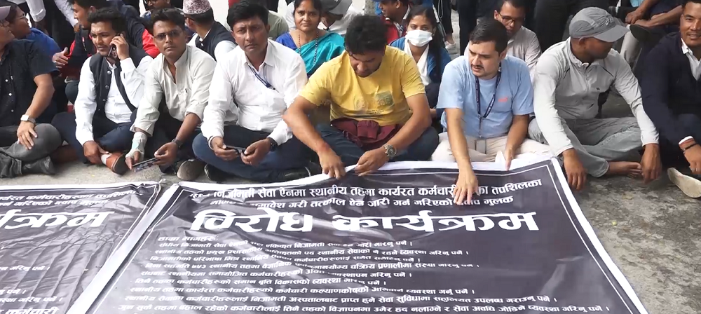 काठमाडौं । सरकारले ल्याउन लागेको सङ्घीय निजामती विधेयकमा असन्तुष्टि जनाउँदै स्थानीय तहका कर्मचारीहरूले शुरु गरेको आन्दोलनलाई मंगलबार पनि निरन्तरता दिएका छन् ।