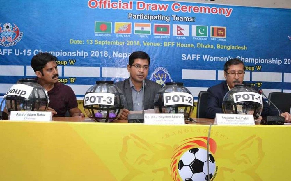 काठमाडौं । साफ महिला फुटबल च्याम्पियनसिपको समुह चरणको ड्र अर्थात समूह विभाजन हिजो बंगलादेशमा सम्पन्न भएको छ ।