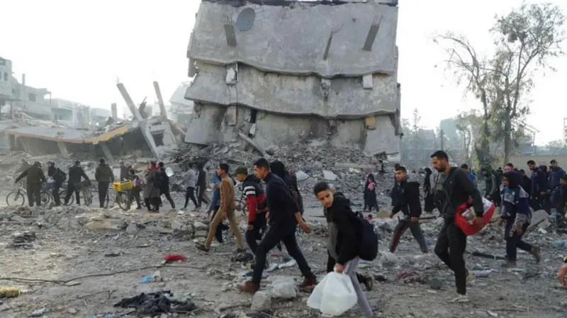 प्रधानमन्त्री बेन्जामिन नेतान्याहूको मन्त्रिमण्डलले युद्ध विराम सम्झौता अनुमोदन गरेपछि गाजाको उत्तरी क्षेत्रबाट इजरायली सेना पछि हटेको छ भने इजरायली सेना पछि हटेलगत्तै विस्थापितहरु खण्डहर बनेका बस्तीमा फर्किन थालेका छन् । यसैगरी मानवीय सहायता बोकेका सयौं ट्रकहरु पनि गाजामा प्रवेश गर्न थालेका छन् ।