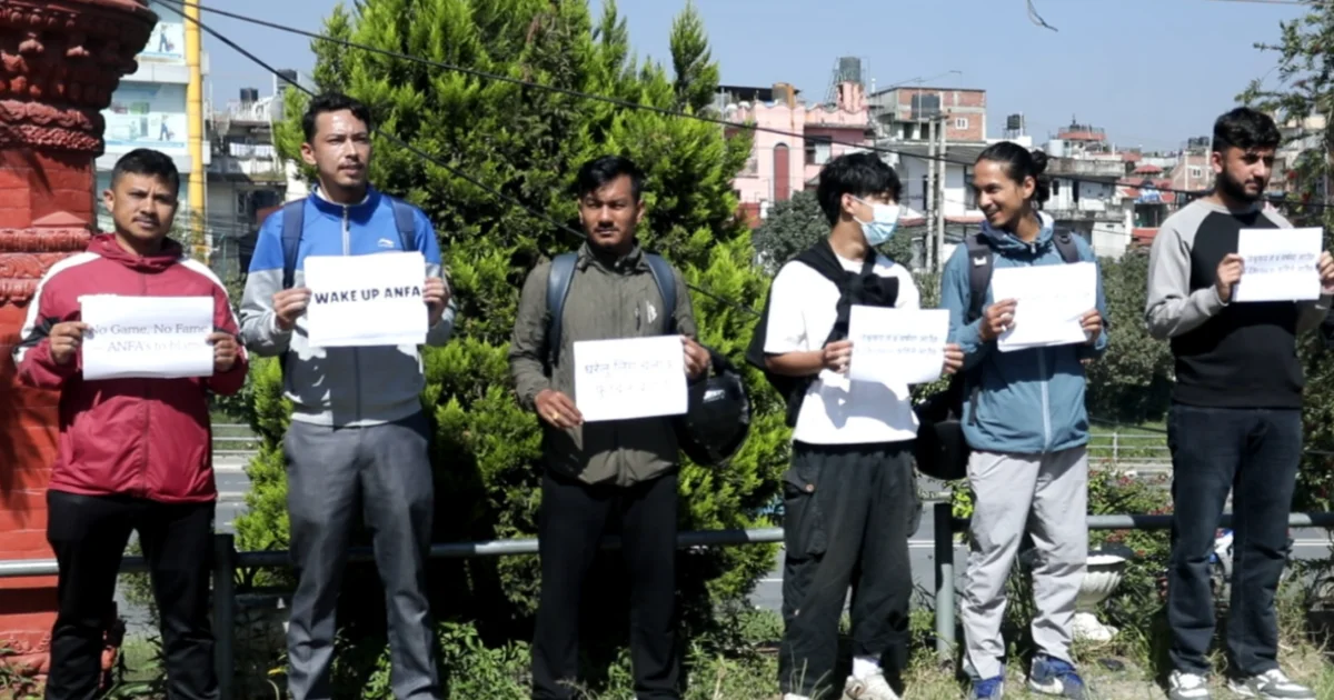 क्यालेण्डरमा नभइ ग्राउण्डमा फुटबल चाहियो भन्दै सरोकारवालाको एन्फा मुख्यालयमा धर्ना
