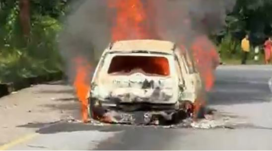 गुडिरहेकाे कारमा अचानक आगलागी, बालक घाइते