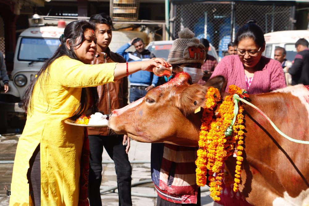 कात्तिक शुक्ल प्रतिपदा एवं यमपञ्चक अर्थात् तिहारको पाँचौ दिन आज गाईको पूजाआजा गरी मीठो खानेकुरा खान दिएर मनाइँदैछ ।