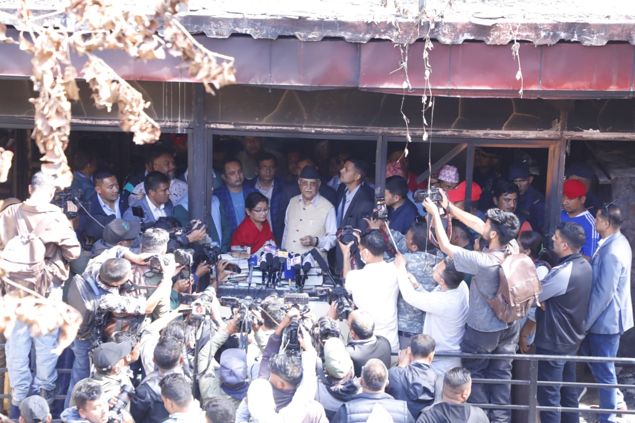नेकपा एमालेका अध्यक्ष केपी शर्मा ओलीले भदौ २३ र २४ गतेको जेनजी आन्दोलनका क्रममा आगजनीबाट क्षतिग्रस्त बनेको आफ्नो बालकोटस्थित निजी निवासको बुधबार अवलोकन गरेका छन् ।