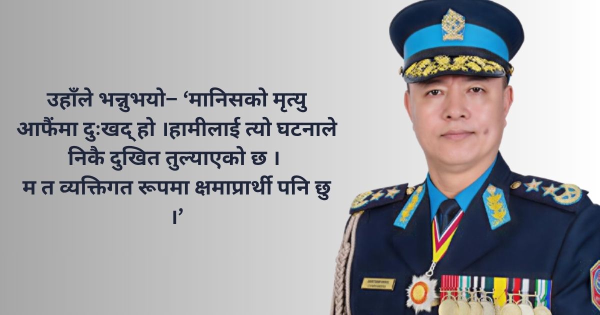 प्रहरी महानिरीक्षक चन्द्र कुबेर खापुङले भदौ २३ र २४ गतेको घटनामा प्रहरीलाई गोली हान्ने आदेश कसैले नदिएर परिस्थितिको उपज भएको बताउनुभएको छ ।