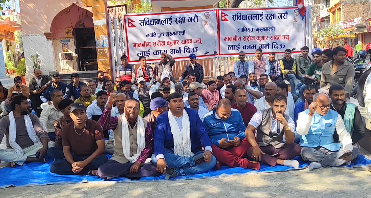 मधेशका मुख्यमन्त्री यादवलाई काम गर्न दिन माग गर्दै जनकपुरमा धर्ना
