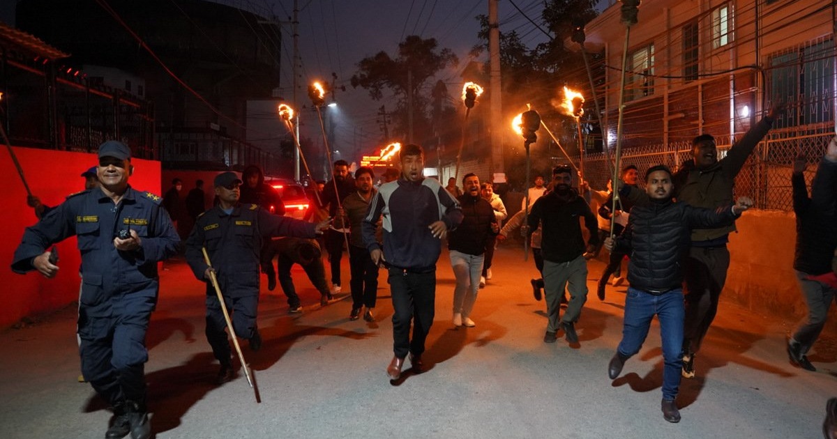काठमाडौं । नेकपा एमाले निकट विद्यार्थी संगठन अनेरास्ववियुले वर्तमान सरकारकाेविरुद्ध नयाँ बानेश्वरमा मसाल जुलुस निकालेकाे छ।