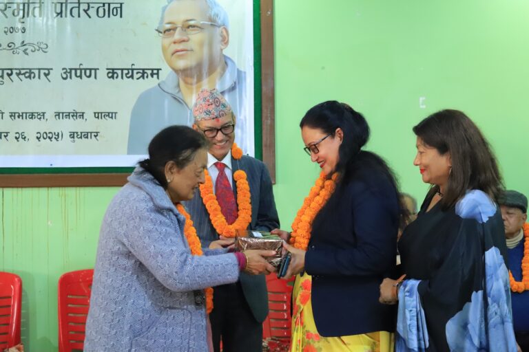 त्यसैगरी, विनय कसजू बाल साहित्य सम्मान शान्तदास मानन्धरलाई, महिला सशक्तीकरण सम्मान सुशीला श्रेष्ठलाई र पाल्पाको समकालीन पत्रकारिता सम्मान झपेन्द्र गहिरेलाई प्रदान गरिएको छ।