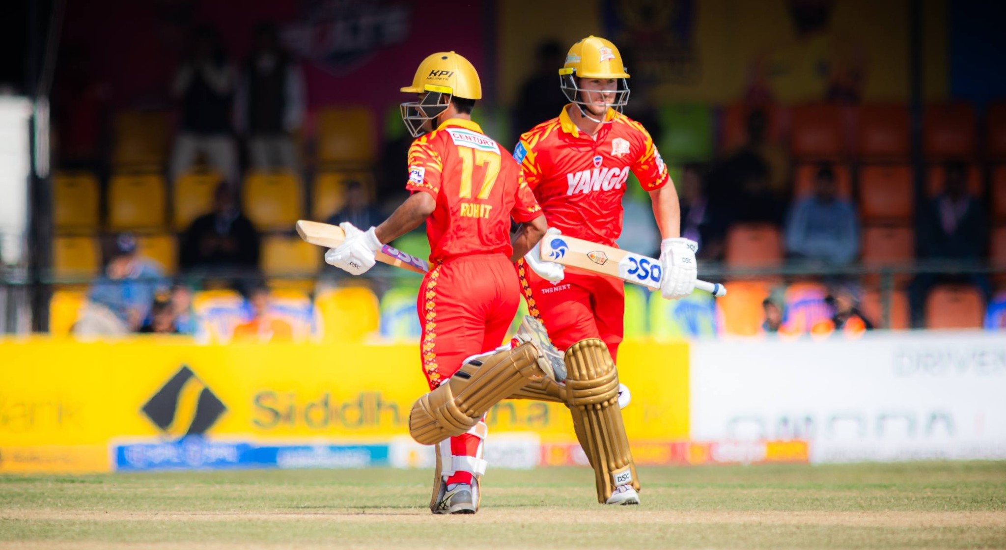 टस हारेर पहिला ब्याटिङ गरेको पोखराले कमजोर सुरुवात गरे पनि एडम रोसिङ्गटन (८१) र जिमी नीशम (१५१) को ९२ रनको साझेदारीले टीमलाई ५ विकेटको क्षतिमा १५० रनसम्म पुर्यायो।