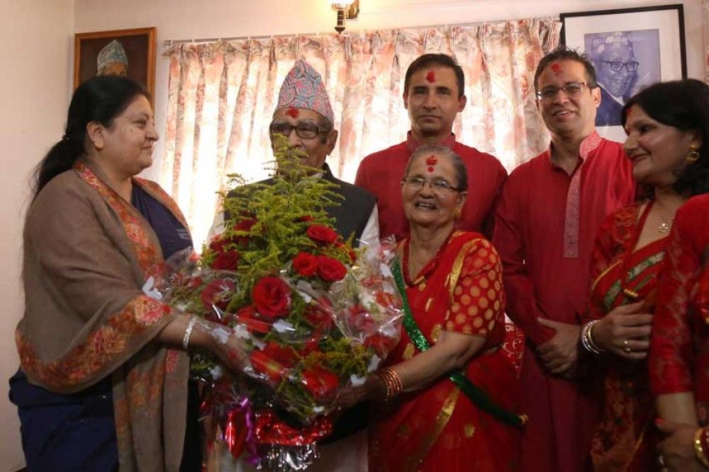 काठमाडौं, असोज ७ । ‘मेरा ६ वटी छोरी छन्, उनीहरु देशमा महिला राष्ट्रपति भएकामा खुशी व्यक्त गरिरहन्छन्,’ सय वर्ष प्रवेशका अवसरमा जन्मदिनको शुभकामना दिन लैनचौरस्थित आफ्नो निवासमा आएकी राष्ट्रपति विद्यादेवी भण्डारीलाई राष्ट्रकवि माधवप्रसाद घिमिरेले भने, ‘मेरो लागि यहाँसम्म कष्ट गर्नुभयो, म धन्य भएँ ।’