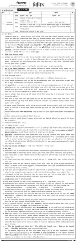 सेनाले प्राविधिक, हवाई तथा विविध सेवातर्फ पदिक र बिल्लादार पदहरुमा भर्ना खुलाएको हो। नर्सिङ ओभरसियर, भेहिकल मेकानिक्स, भिडियो ग्राफर, प्रचारप्रसार, इलेक्ट्रिसिएन, डिस्प्याचर, कम्प्युटर, डेण्टल, ध्वनी सम्पादन र ब्याण्ड लगायतका पदमा पनि भर्ना खुलेको छ।