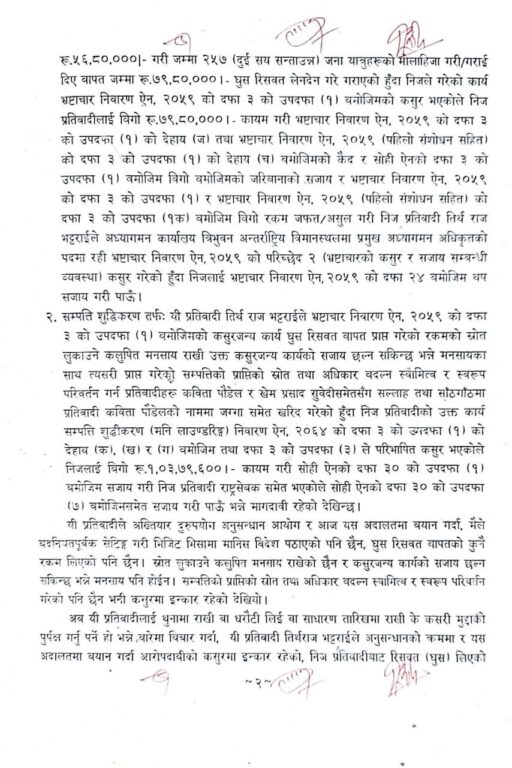 काठमाडौं । भिजिट भिसा अनियमितता प्रकरणमा पक्राउ परेका विमानस्थल अध्यागमन कार्यालयका तत्कालीन सहसचिव तीर्थराज भट्टराईको थुनछेक बहस सकिएको छ।