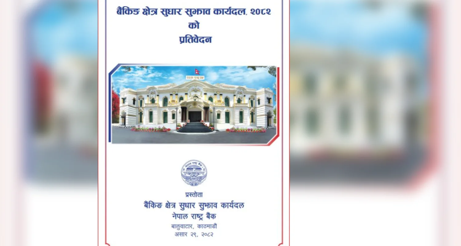 सुस्त आर्थिक गतिविधिलाई पुनः चलायमान बनाउन बैंकिङ क्षेत्रले प्रभावकारी भुमिका खेल्नुपर्ने निष्कर्षसहित बैंकिङ क्षेत्र सुधार सुझाव कार्यदलले नीतिगत, संरचनागत र सञ्चालनगत सुधारका विस्तृत सुझाव दिएको छ ।