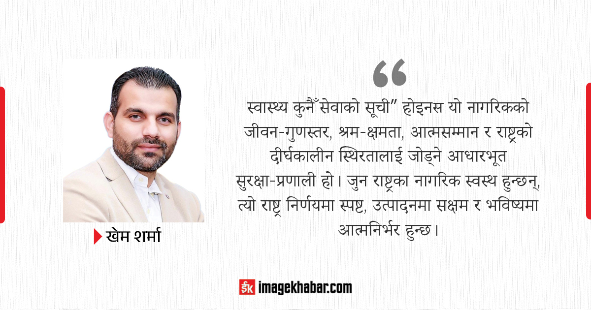 स्वास्थ्य कुनै “सेवाको सूची” होइन; यो नागरिकको जीवन–गुणस्तर, श्रम-क्षमता, आत्मसम्मान र राष्ट्रको दीर्घकालीन स्थिरतालाई जोड्ने आधारभूत सुरक्षा–प्रणाली हो। जुन राष्ट्रका नागरिक स्वस्थ हुन्छन्, त्यो राष्ट्र निर्णयमा स्पष्ट, उत्पादनमा सक्षम र भविष्यमा आत्मनिर्भर हुन्छ। स्वास्थ्य कमजोर भयो भने गरिबी पुस्तौँसम्म सर्छ, उत्पादकत्व घट्छ र समाजमा असन्तुलन गहिरिन्छ। नेपालवादका दृष्टिमा स्वास्थ्य मानव–पुँजी जोगाउने राष्ट्रिय सुरक्षा–तन्त्र हो-भित्रैबाट राष्ट्र उठाउने शक्ति हो। “स्वास्थ्य बलियो भयो भने राष्ट्र भित्रैबाट उठ्छ।”