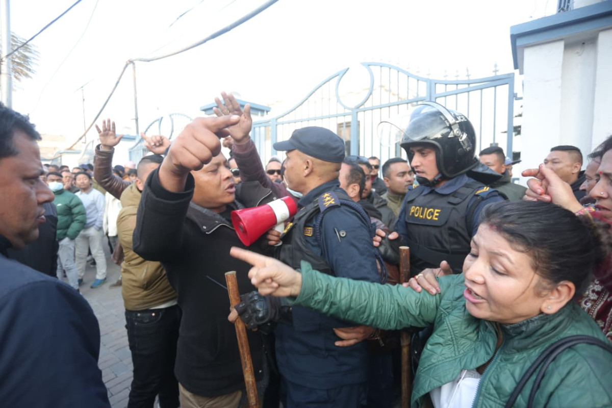 पार्टीको संस्थापन पक्ष शेरबहादुर देउवा नेतृत्व र विशेष महाधिवेशन पक्ष गगन थापा नेतृत्व दुवैले एक-अर्काविरुद्ध आधिकारिकताको दावी गर्दै आयोग परिसरमा प्रदर्शन र धर्ना दिएका हुन् । विशेष महाधिवेशनबाट गगन थापालाई सभापति चयन गरेको पक्षले बिहीबार आधिकारिकताको माग गर्दै आयोगमा निवेदन दर्ता गराएको थियो । त्यसको प्रतिवादमा शुक्रबार बिहानै देउवा पक्षका शीर्ष नेता तथा कार्यकर्ताहरूको जम्बो टोली आयोग पुगेको हो ।
