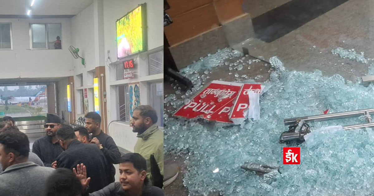 रास्वपा सभापति लामिछाने, वरिष्ठ नेता शाह लगायतका नेताहरूलाई स्वागत गर्न विमानस्थलको गेटमा समर्थकहरूको ठूलो भिड लागेको थियो । सो क्रममा एकआसपमा धकेला धकेल हुँदा विमानस्थलको सिसाको ढोका नै फुटेको हो ।