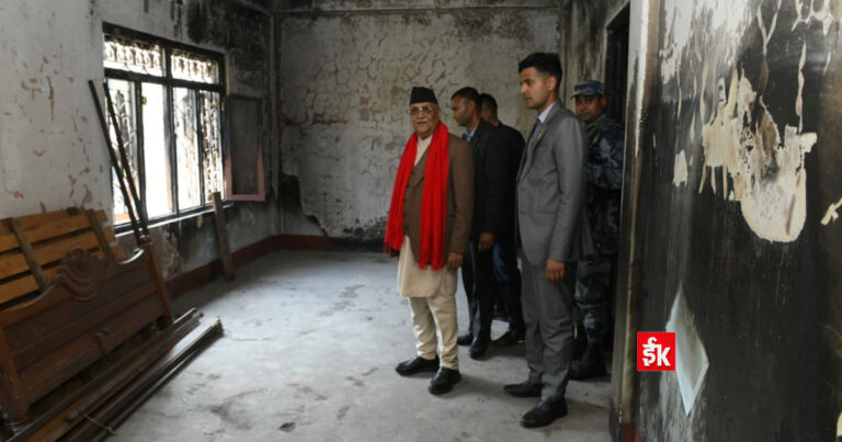 नेकपा (एमाले) का अध्यक्ष तथा पूर्वप्रधानमन्त्री केपी शर्मा ओलीले झापा निर्वाचन क्षेत्र नम्बर ५ मा गत भदौ २३ र २४ गते जेन–जी आन्दोलनका क्रममा आगजनी भएका संरचनाहरूको निरीक्षण गर्नुभएको छ ।