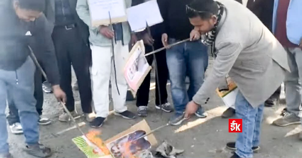 दोधरा–चाँदनी क्षेत्रमा गरिएको विरोध कार्यक्रममा टिकट वितरणप्रति असन्तुष्टि जनाउँदै पुत्ला दहन गरिएको हो ।