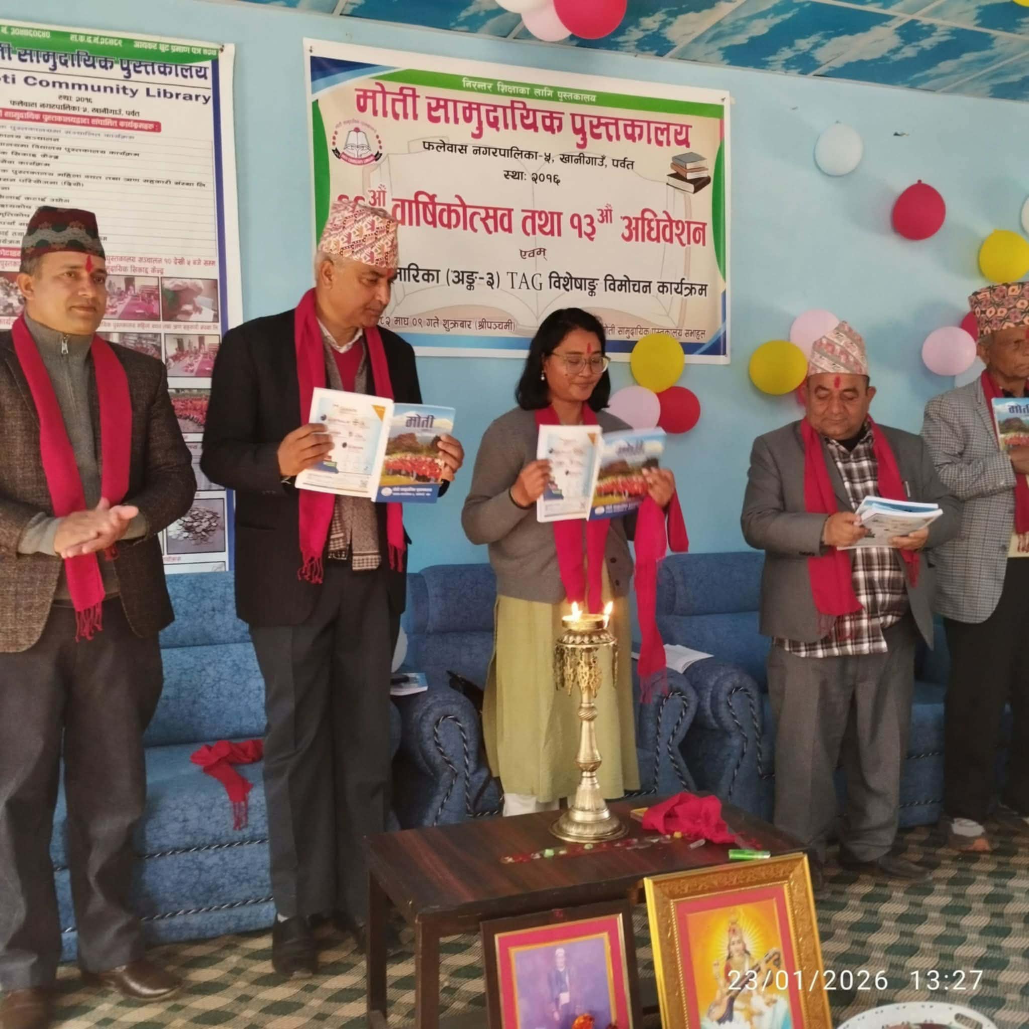 वार्षिकोत्सव समारोहको अवसरमा पुस्तकालयद्वारा प्रकाशित साहित्यिक पत्रिका “मोति” अंक–३ समेत औपचारिक रूपमा विमोचन गरिएको थियो।