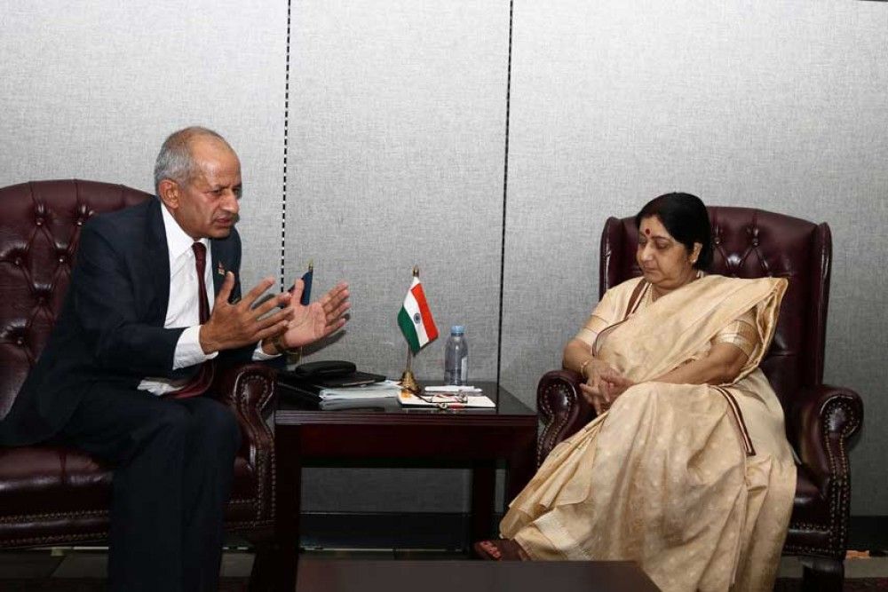 New York, Sept 25 (RSS): Minister for Foreign Affairs Pradeep Kumar Gyawali held a meeting with Minister of External Affairs of India, Sushma Swaraj, at the UN headquarters here today.