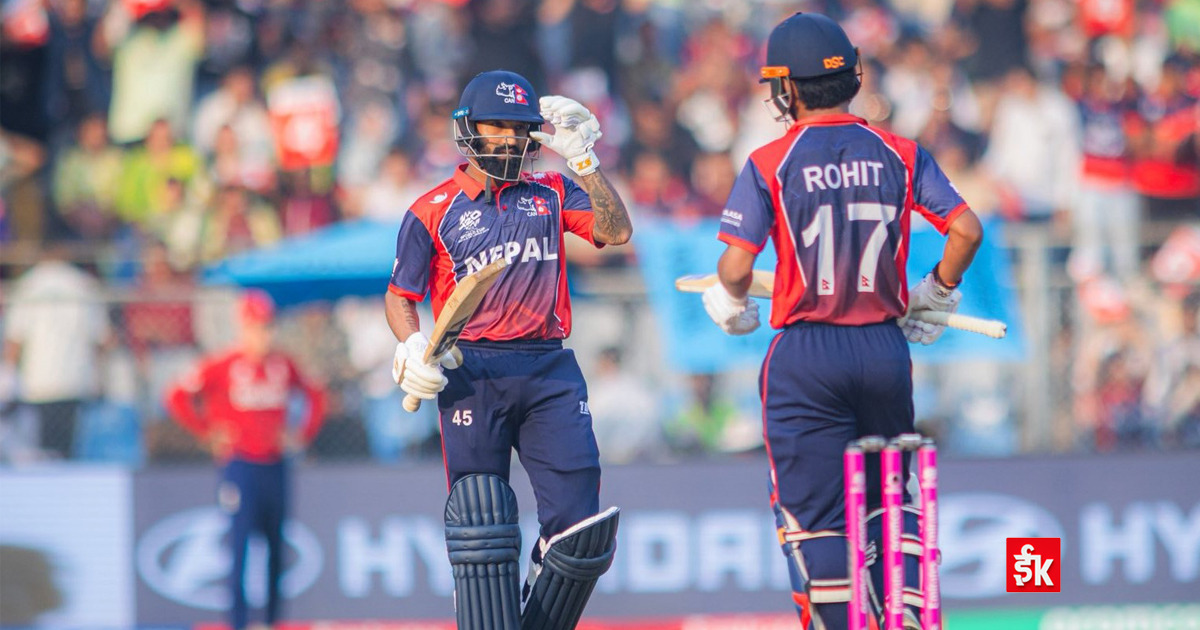 राम्रो ओपनिङ दिएको नेपालका कुशल भुर्तेलले २९ रन बनाए । आसिफ सेख ७ रनमा आउट भए । दिपेन्द्रसिंह ऐरिले ४४ रन बनाउँदा कप्तान रोहित पौडेलले ३९ र आरिफसेखले १० रन बनाए । लोकेश बम ३९ र करन केसी १ रनमा अविजित रहे । जित नजिक रहेको नेपालले अन्तिम ओभरमा गुलसन झा को विकेट गुमाउँदा खेल हार्न पुग्यो ।