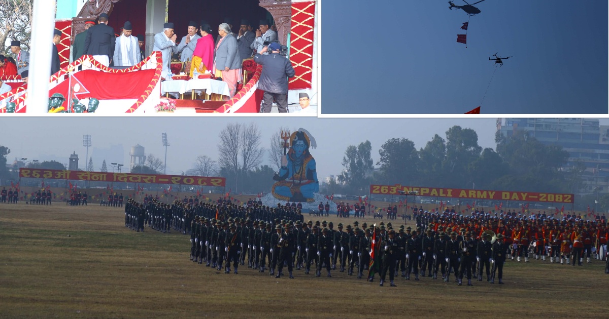 काठमाडौं । नेपाली सेनाले आफ्नो स्थापनाको २६३ औं वार्षिकोत्सव आइतबार टुँडिखेलमा विभिन्न कार्यक्रम गरी मनाएको छ ।