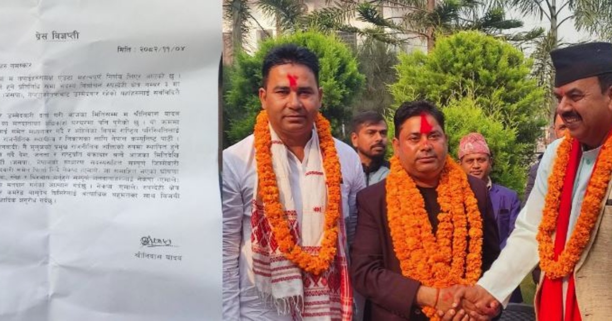 काठमाडाैं । प्रतिनिधिसभा सदस्य निर्वाचन अन्तर्गत रुपन्देही-३ मा जनता समाजवादी पार्टी (जसपा), नेपालका तर्फबाट उम्मेदवार रहेका श्रीनिवास यादवले उम्मेदवारी फिर्ता लिनुभएकाे छ।