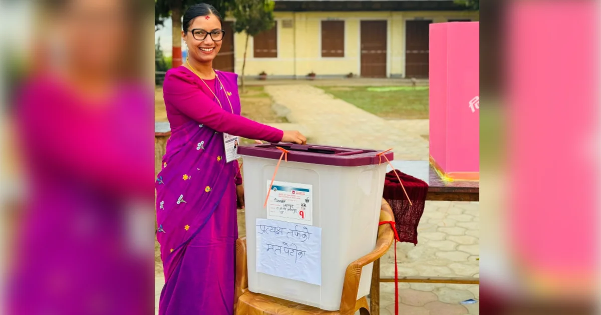 उनले चितवन क्षेत्र नं. ३ स्थित राष्ट्रिय आधारभूत विद्यालयबाट मतपत्रमा मतदान गरेकी हुन्। आज देशभर प्रतिनिधिसभाका लागि मतदान हुँदैछ । बिहानैदेखि मतदाताहरु आफ्नो प्रतिनिधि छान्न लाइनमा छन्।