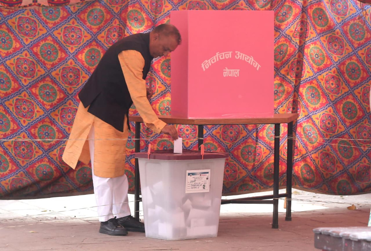 कांग्रेस सभापति थापाले काठमाडौंबाट गरे मतदान (तस्बिरसहित)