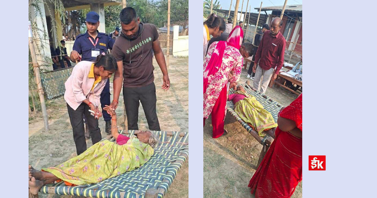 बिरामी अवस्थामा रहेकी एक वृद्धा महिलालाई मतदानका लागि खाटमै बोकेर मतदान केन्द्रसम्म ल्याइ मतदान गराइएको हो।