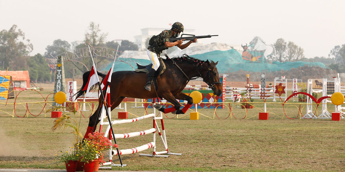 समारोहमा नेपाली सेनाका तर्फबाट अश्वकला, मोटरसाइकल खेल, शारीरिक व्यायाम, युद्धकला लगायतको प्रदर्शन गरिएको थियो ।