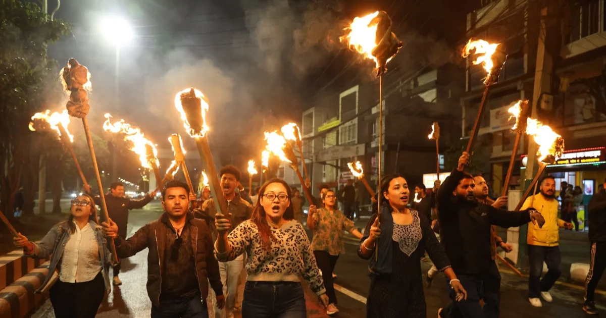 काठमाडौँ । नेकपा एमाले निकट युवा संघले अध्यक्ष केपी शर्मा ओली पक्राउको विरोधमा काठमाडौंमा मसाल जुलुस निकालेको छ । बिजुलीबजार क्षेत्रमा नेता–कार्यकर्ताहरूले जुलुस निकाल्दै सरकारविरुद्ध नाराबाजी गरेका हुन् ।