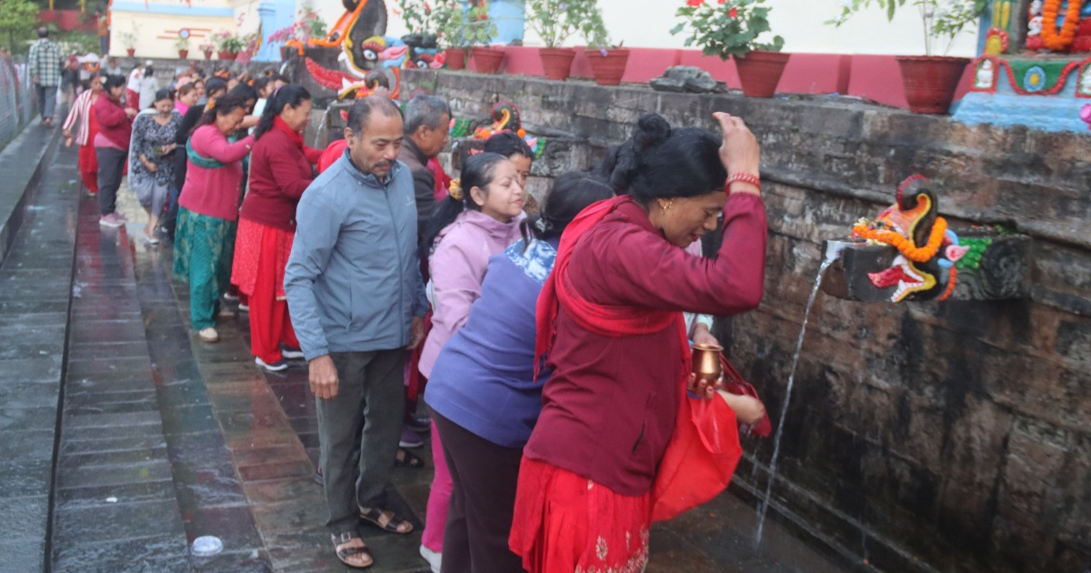 काठमाडाैंकाे बालाजु बाइसधारा मेलामा स्नान गर्ने भक्तजनको भीड