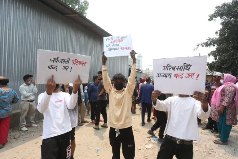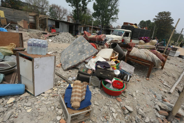 वर्षौंदेखि बसेको झुपडी, जोगाएर राखिएका साना–साना खुशीका पाटाहरू र नानीबाबुहरूको भविष्य सबै एउटै सानो झोलामा अटाउन खोज्दा त्यहाँको परिदृश्य अत्यन्तै हृदयविदारक देखिएको हाे । कोही आफ्नो च्यातिएको ओछ्यान मिलाउँदै छन् । कोही अब कहाँ जाने भनेर चिन्तामा रहेका हुन् ।